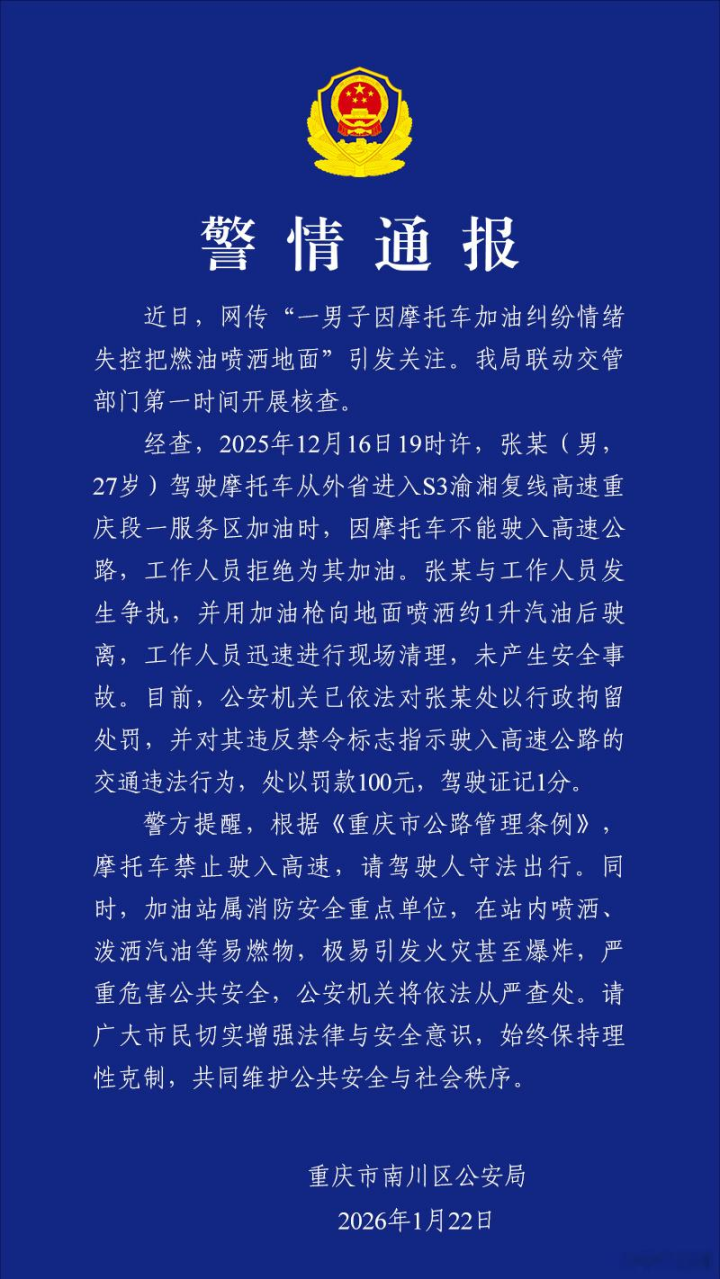 男子向地上喷洒汽油表示不满。图源:国家应急广播