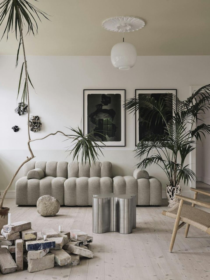 布局是四联横厅,一个不违合的大横厅,四个生活功能,米兰互为一体,不影响各自的功能性,格局很帅,动线有趣,造型有腔调儿!
