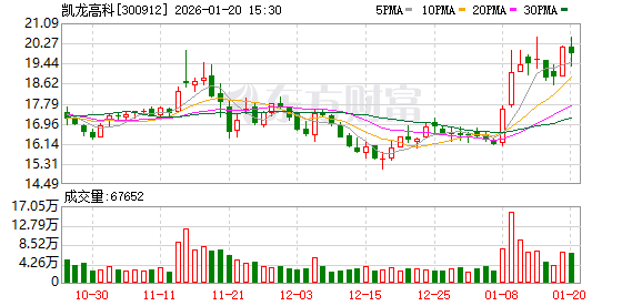 凯龙高科计划自1月21日开市起停牌。截至1月20日收盘,凯龙高科股价报19.85元/股,下跌1.24%,总市值为22.80亿元。