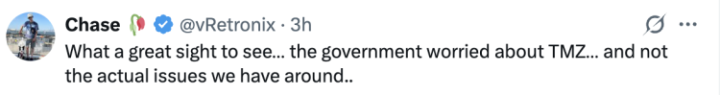 “真实一出‘好戏’……政府忙着顾忌TMZ(好意思国文娱新闻网站)的八卦,而不是咱们身边真确的问题。”
