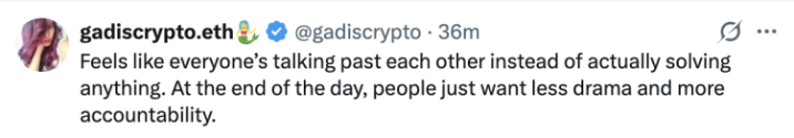 “嗅觉大家齐在各说各话,根柢没东说念主在真确管束任何问题。说到底,东说念主们思要的不外是少点闹剧、多点株连。”