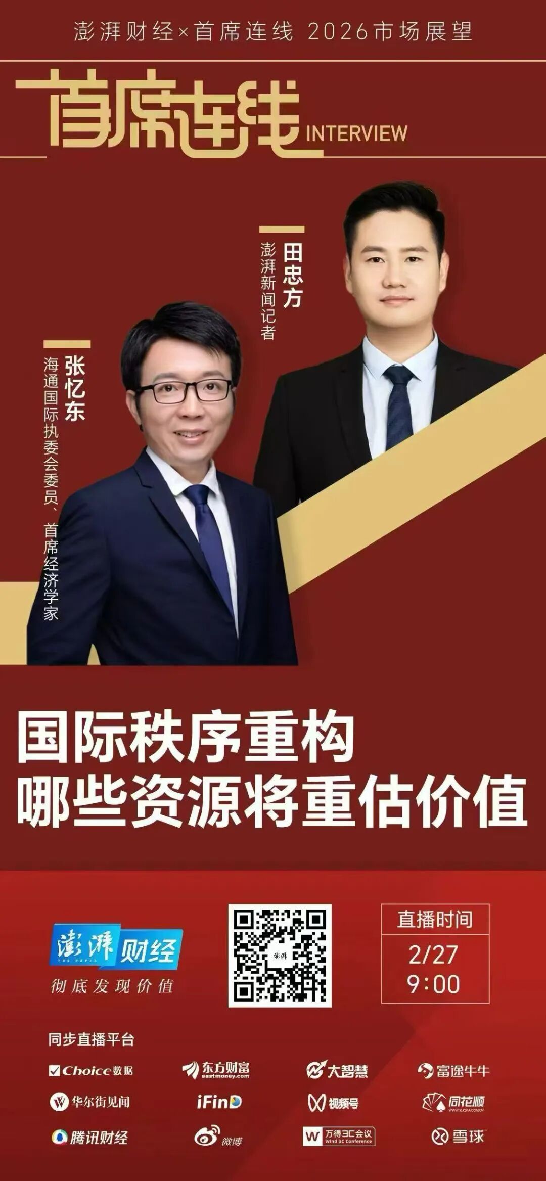 2026年2月27日,海通海外握委会委员、首席经济学家张忆东作客滂沱财经《首席连线》2026市集瞻望节目,米兰app官方网站就“海外顺次重构,哪些资源将重估价值”带来分析和瞻望。