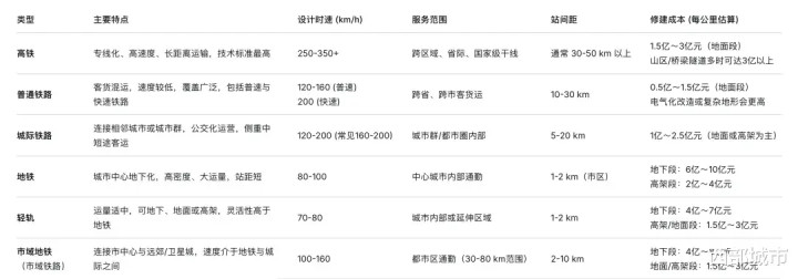 同时,城际铁路也还有别于市域(郊)铁路。前者主要是城市群内部城市之间的连接,后者则聚焦于都市圈或市域范围内的通勤服务。