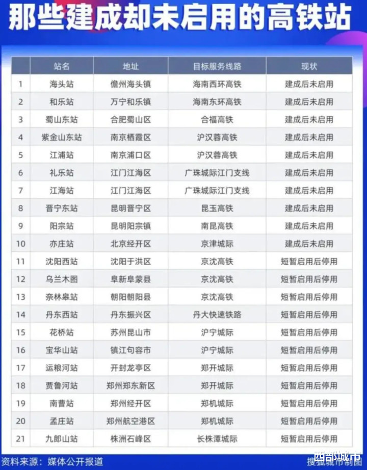 要知道,此前就有媒体统计,全国已至少有26个高铁站建成后,因位置偏远、周边配套不足、客流量低等缘故,处于未启用或关停状态。