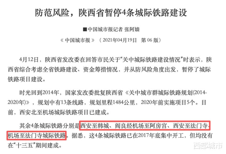 如陕西就一次性暂停4条城际铁路的建设。