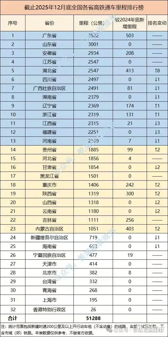 接近一半的省份,高铁运营里程超过了2000公里。