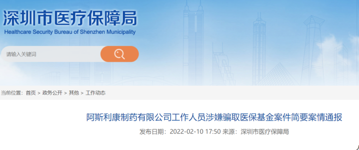 2022年2月,深圳医保局正式通报相关问题,阿斯利康也确认少数深圳员工存在篡改检测报告的行为。